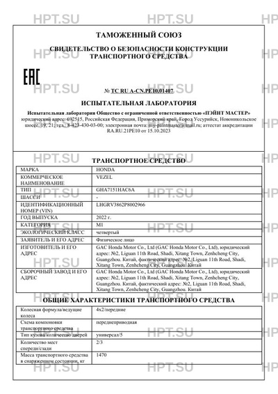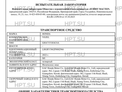 Предприятие-изготовитель GAC Honda Motor Co., Ltd (GAC Honda Motor Co., Ltd), юридический адрес: №2, Liguan 11th Road, Shadi, Xitang Town, Zenhcheng City, Guangzhou. Китай, фактический адрес: №2, Liguan 11th Road, Shadi, Xitang Town, Zenhcheng City, Guangzhou. Китай