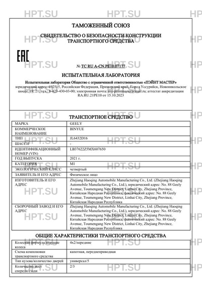 | Предприятие-изготовитель | Zhejiang Haoqing Automobile Manufacturing Co., Ltd. (Zhejiang Haoqing Automobile Manufacturing Co., Ltd.), юридический адрес: No. 88 Geely Avenue, Toumengang New District, Linhai City, Zhejiang Province, Китайская Народная Республика, фактический адрес: No. 88 Geely Avenue, Toumengang New District, Linhai City, Zhejiang Province, Китайская Народная Республика |