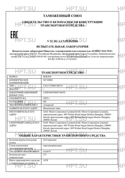 | Предприятие-изготовитель | SAIC Motor Corporation Limited (SAIC Motor Corporation Limited), юридический адрес: 489 Weihai Road Jingan District Shanghai, 200041 Китай, фактический адрес: 489 Weihai Road Jingan District Shanghai, 200041 Китай |