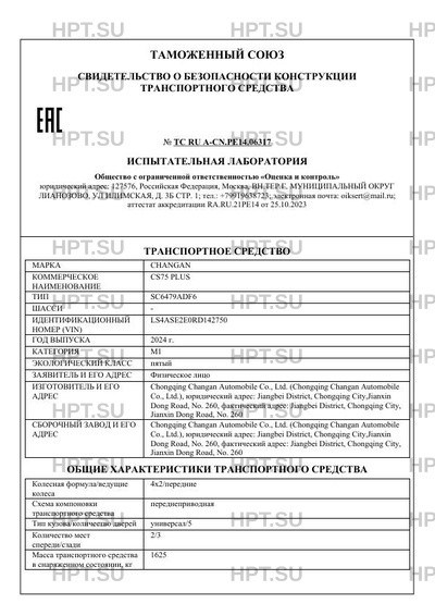| Предприятие-изготовитель | Chongqing Changan Automobile Co., Ltd. (Chongqing Changan Automobile Co., Ltd.), юридический адрес: Jiangbei District, Chongqing City,Jianxin Dong Road, No. 260, фактический адрес: Jiangbei District, Chongqing City, Jianxin Dong Road, No. 260 |