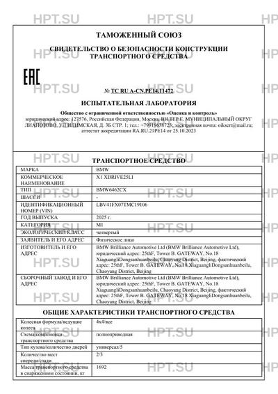 | Предприятие-изготовитель | BMW Brilliance Automotive Ltd (BMW Brilliance Automotive Ltd), юридический адрес: 25thF, Tower В. GATEWAY, No.18 XiaguangliDongsanhuanbeilu, Chaoyang District, Beijing, фактический адрес: 25thF, Tower В. GATEWAY, No.18 XiaguangliDongsanhuanbeilu, Chaoyang District, Beijing |