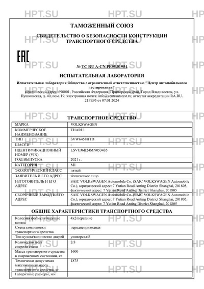 | Предприятие-изготовитель | SAIC VOLKSWAGEN Automobile Co. (SAIC VOLKSWAGEN Automobile Co.), юридический адрес: 7 Yutian Road Anting District Shanghai, 201805, фактический адрес: 7 Yutian Road Anting District Shanghai, 201805 |