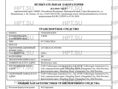 Предприятие-изготовитель FAW-Volkswagen Automotive Co., Ltd. (FAW-Volkswagen Automotive Co., Ltd.), юридический адрес: Dongfeng Street, Changchun City, Jilin Province, фактический адрес: Dongfeng Street, Changchun City, Jilin Province
