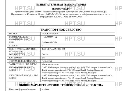 Предприятие-изготовитель SAIC Volkswagen Automotive Co., Ltd. (SAIC Volkswagen Automotive Co., Ltd.), юридический адрес: No. 63 Luopu Road, Anting, Shanghai, фактический адрес: No. 63 Luopu Road, Anting, Shanghai
