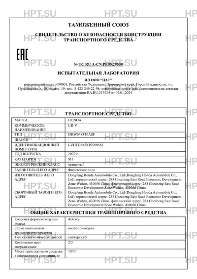Предприятие-изготовитель Dongfeng Honda Automobile Co., Ltd (Dongfeng Honda Automobile Co., Ltd), юридический адрес: 283 Checheng East Road Economic Development Zone Wuhan, 430056 China, фактический адрес: 283 Checheng East Road Economic Development Zone Wuhan, 430056 China