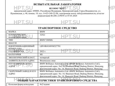 Предприятие-изготовитель BMW Brilliance Automotive Ltd. (BMW Brilliance Automotive Ltd.), юридический адрес: No. 14, Shanzuizi Road, Dadong District, Shenyang, фактический адрес: No. 14, Shanzuizi Road, Dadong District, Shenyang