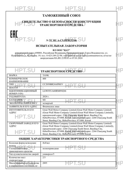 | Марка ТС | TANK |