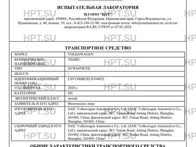 | Предприятие-изготовитель | SAIC Volkswagen Automotive Co., Ltd. (SAIC Volkswagen Automotive Co., Ltd.), юридический адрес: №7, Yutian Road, Anting District, Shanghai, 201805, China, фактический адрес: №7, Yutian Road, Anting District, Shanghai, 201805, China |