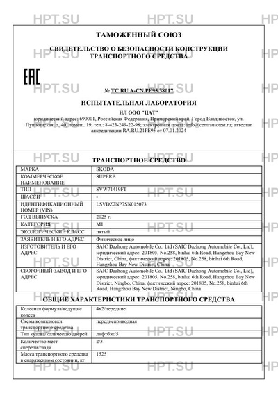 | Предприятие-изготовитель | SAIC Dazhong Automobile Co., Ltd (SAIC Dazhong Automobile Co., Ltd), юридический адрес: 201805, No.258, binhai 6th Road, Hangzhou Bay New District, China, фактический адрес: 201805, No.258, binhai 6th Road, Hangzhou Bay New District, China |
