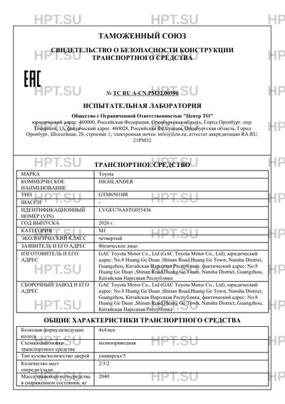 | Тип ТС | GTM6501HR |
