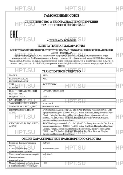 Предприятие-изготовитель SAIC Dazhong Automobile Co., Ltd
