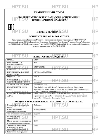 | Коммерческое наименование | 325LI |
