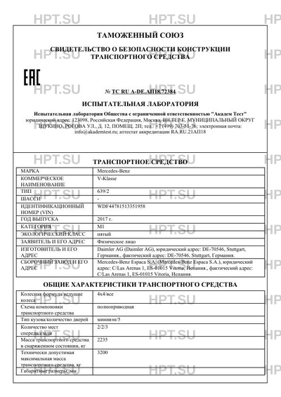 | Коммерческое наименование | V-Klasse |