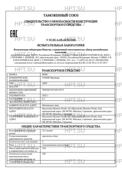 | Коммерческое наименование | S1000R Mpackage |