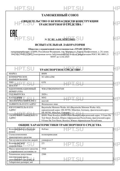 | Номер документа | ТС RU А-DE.МТ87.18833 |