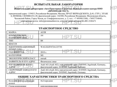 | Предприятие-изготовитель | Audi AG (Audi AG), юридический адрес: D-85045, Ingolstadt, Germany, фактический адрес: D-85045, Ingolstadt, Germany |
