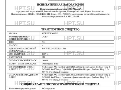 | Марка ТС | VOLKSWAGEN |