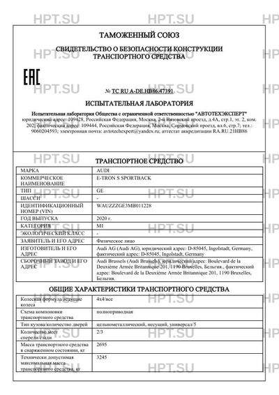 | Коммерческое наименование | E-TRON S SPORTBACK |