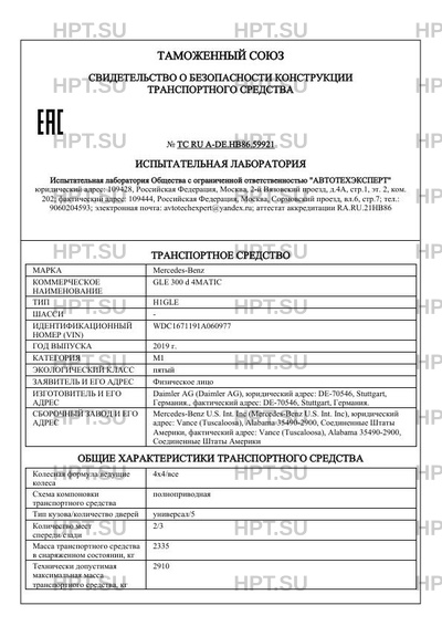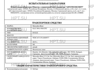 | Коммерческое наименование | GLE 300 d 4MATIC |