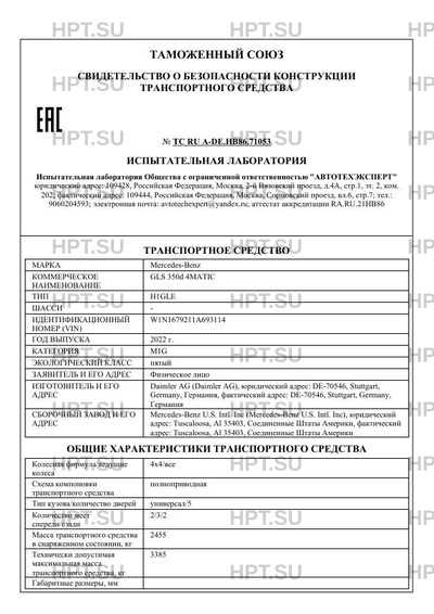| Предприятие-изготовитель | Daimler AG (Daimler AG), юридический адрес: DЕ-70546, Stuttgart, Germany, Германия, фактический адрес: DЕ-70546, Stuttgart, Germany, Германия |
