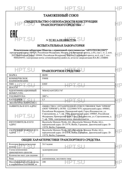 Предприятие-изготовитель Bayerische Motoren Werke AG. (Bayerische Motoren Werke AG.), юридический адрес: D-13578, Berlin, Германия., фактический адрес: D- 13578, Berlin, Германия.