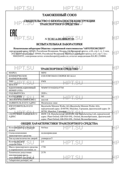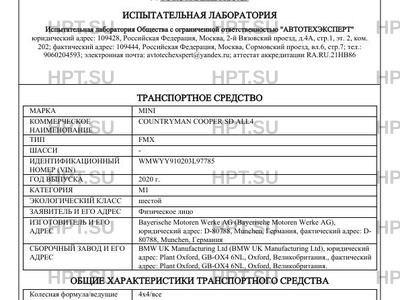 Коммерческое наименование COUNTRYMAN COOPER SD ALL4