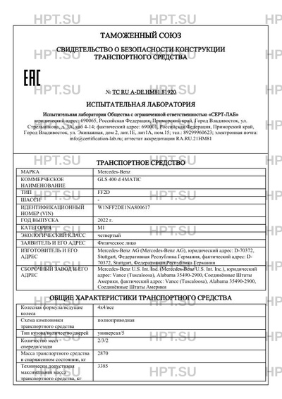 Коммерческое наименование | GLS 400 d 4MATIC |
