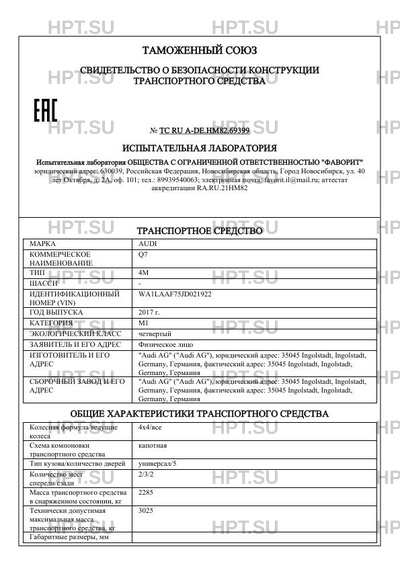 | Предприятие-изготовитель | "Audi AG" ("Audi AG"), юридический адрес: 35045 Ingolstadt, Ingolstadt, Germany, Германия, фактический адрес: 35045 Ingolstadt, Ingolstadt, Germany, Германия |