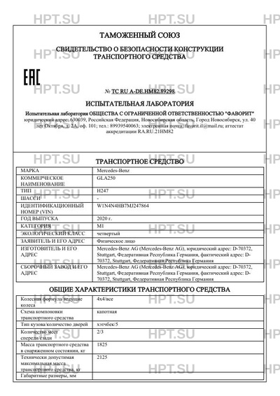 | Коммерческое наименование | GLA250 |