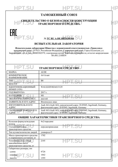 Предприятие-изготовитель Audi AG (Audi AG), юридический адрес: D-85045, Ingolstadt, Germany, фактический адрес: D-85045, Ingolstadt, Germany