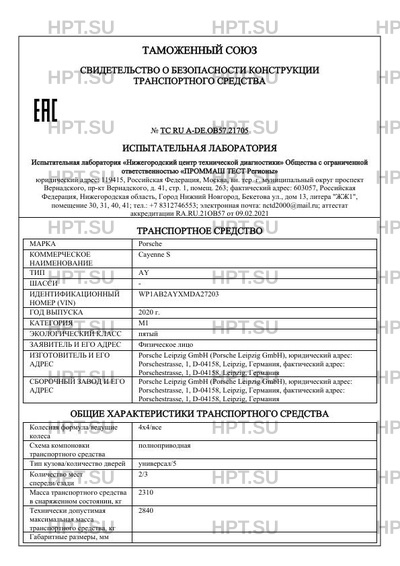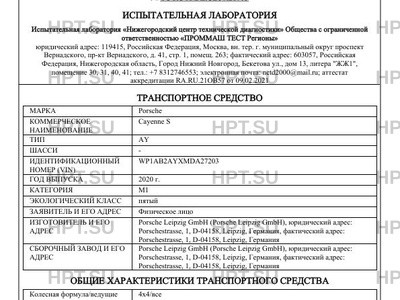 Предприятие-изготовитель Porsche Leipzig GmbH (Porsche Leipzig GmbH), юридический адрес: Porschestrasse, 1, D-04158, Leipzig, Германия, фактический адрес: Porschestrasse, 1, D-04158, Leipzig, Германия