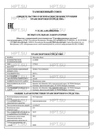 | Предприятие-изготовитель | Daimler AG (Daimler AG), юридический адрес: D-70546 Stuttgart, Germany, фактический адрес: D-70546 Stuttgart, Germany |