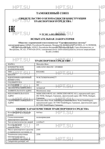 | Коммерческое наименование | AMG GT43 4MATIC+ HYBRID |