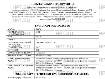 | Предприятие-изготовитель | Bayerische Motoren Werke AG (Bayerische Motoren Werke AG), юридический адрес: DE-80788, Mnchen, Германия, фактический адрес: DE-80788, Mnchen, Германия |