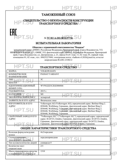 | Номер документа | ТС RU А-DE.ОК12.57736 |