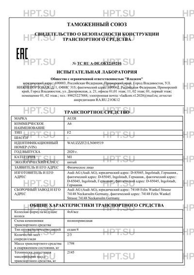 | Предприятие-изготовитель | Audi AG (Audi AG), юридический адрес: D-85045, Ingolstadt, Германия., фактический адрес: D-85045, Ingolstadt, Германия., фактический адрес: D-85045, Ingolstadt, Германия., фактический адрес: D-85045, Ingolstadt, Германия. |