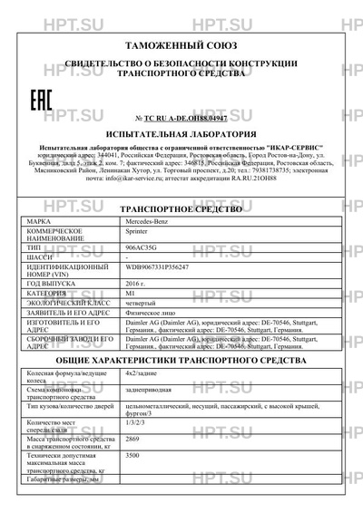 Предприятие-изготовитель Daimler AG (Daimler AG), юридический адрес: DE-70546, Stuttgart, Германия., фактический адрес: DE-70546, Stuttgart, Германия.