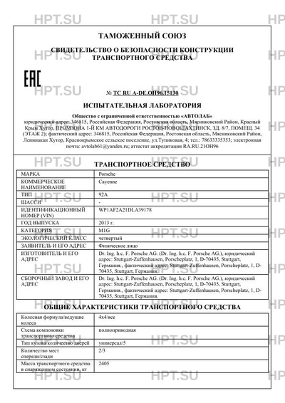 | Предприятие-изготовитель | Dr. Ing. h.c. F. Porsche AG. (Dr. Ing. h.c. F. Porsche AG.), юридический адрес: Stuttgart-Zuffenhausen, Porscheplatz, 1, D-70435, Stuttgart, Германия., фактический адрес: Stuttgart-Zuffenhausen, Porscheplatz, 1, D- 70435, Stuttgart, Германия. |