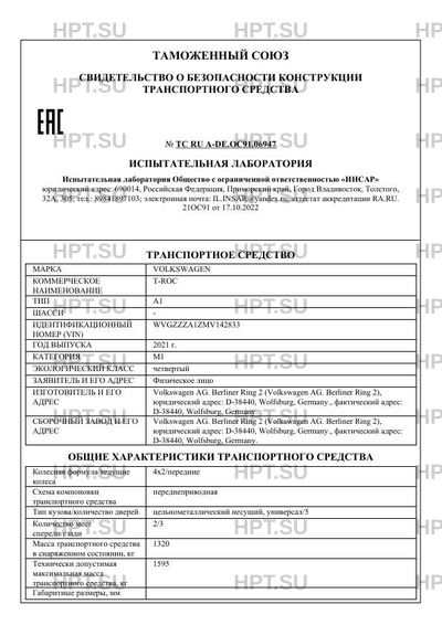 | Номер документа | ТС RU А-DE.ОС91.06947 |