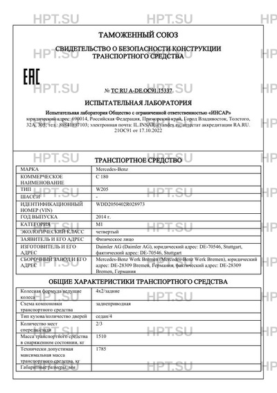 | Тип ТС | W205 |