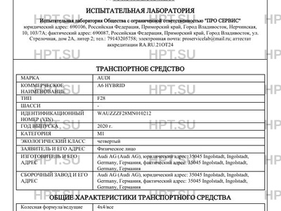 | Предприятие-изготовитель | Audi AG (Audi AG), юридический адрес: 35045 Ingolstadt, Ingolstadt, Germany, Германия, фактический адрес: 35045 Ingolstadt, Ingolstadt, Germany, Германия |