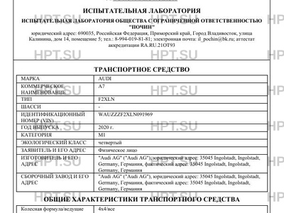 Предприятие-изготовитель "Audi AG" ("Audi AG"), юридический адрес: 35045 Ingolstadt, Ingolstadt, Germany, Германия, фактический адрес: 35045 Ingolstadt, Ingolstadt, Germany, Германия