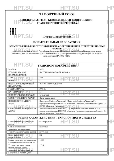 | Коммерческое наименование | HATCH JOHN COOPER WORKS |