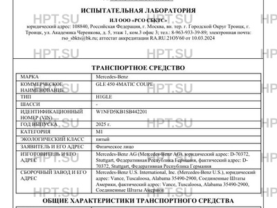 Предприятие-изготовитель Mercedes-Benz AG (Mercedes-Benz AG), юридический адрес: D-70372, Stuttgart, Федеративная Республика Германия, фактический адрес: D- 70372, Stuttgart, Федеративная Республика Германия