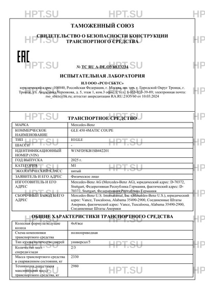 Коммерческое наименование GLE 450 4MATIC COUPE