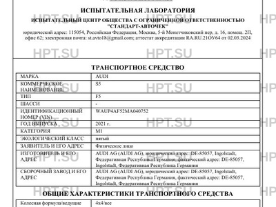 Предприятие-изготовитель AUDI AG (AUDI AG), юридический адрес: DE-85057, Ingolstadt, Федеративная Республика Германия, фактический адрес: DE-85057, Ingolstadt, Федеративная Республика Германия