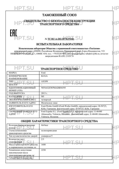 | ДВС | FORD, JTM, четырехтактный, бензиновый |