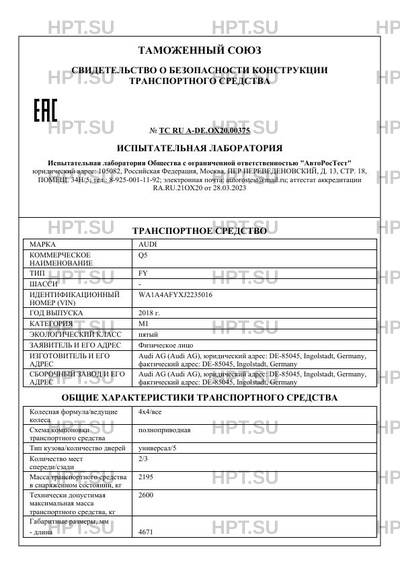 | Предприятие-изготовитель | Audi AG (Audi AG), юридический адрес: DE-85045, Ingolstadt, Germany, фактический адрес: DE-85045, Ingolstadt, Germany |