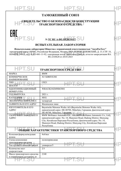 | Коммерческое наименование | X5 XDRIVE30I |