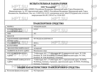| Предприятие-изготовитель | "Volkswagen AG." ("Volkswagen AG."), юридический адрес: W 3180, Postfach, W 3180 Wolfsburg 1,Germany, фактический адрес: W 3180, Postfach, W 3180 Wolfsburg 1,Germany |
